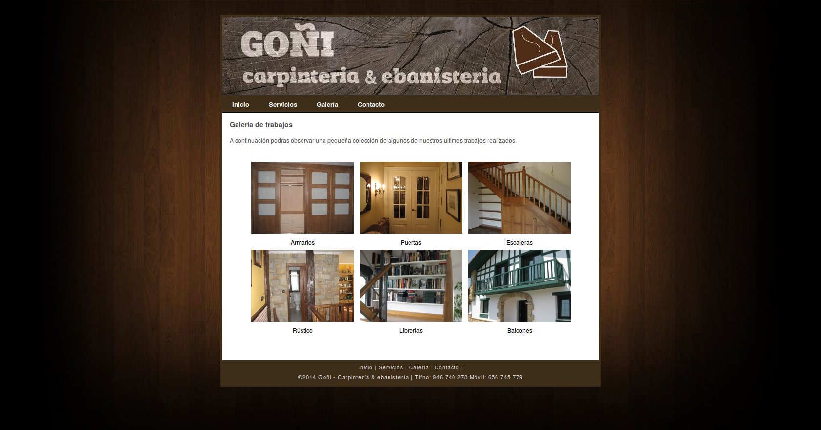 Se trata de una web estática muy básica programada en PHP cuya finalidad es mostrar los trabajos realizados por Goñi, por ello la sección a destacar es la de «galería» donde podremos observar distintos trabajos realizados en madera ya finalizados.