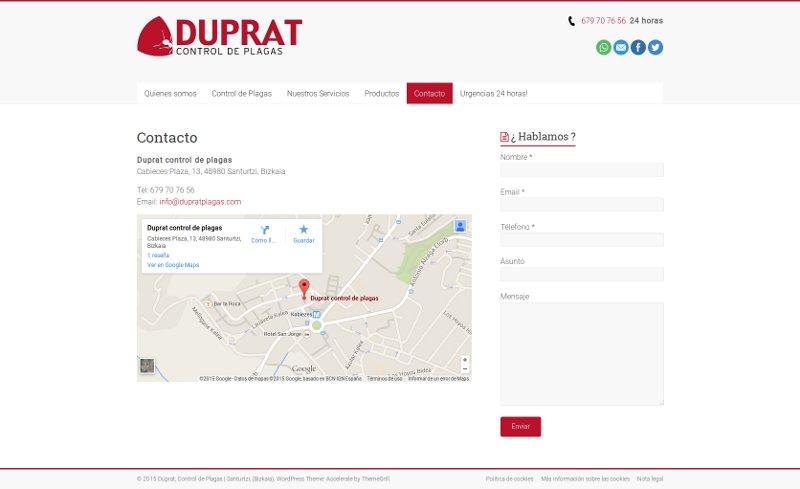 Tercera versión de la web que realizamos para la empresa Duprat control de plagas. Tras un par de años hemos optado por modernizar tanto el diseño como la navegabilidad de la web haciéndola totalmente adaptable para dispositivos móviles cumpliendo con las exigencias que establece Google para formar parte de su buscador.