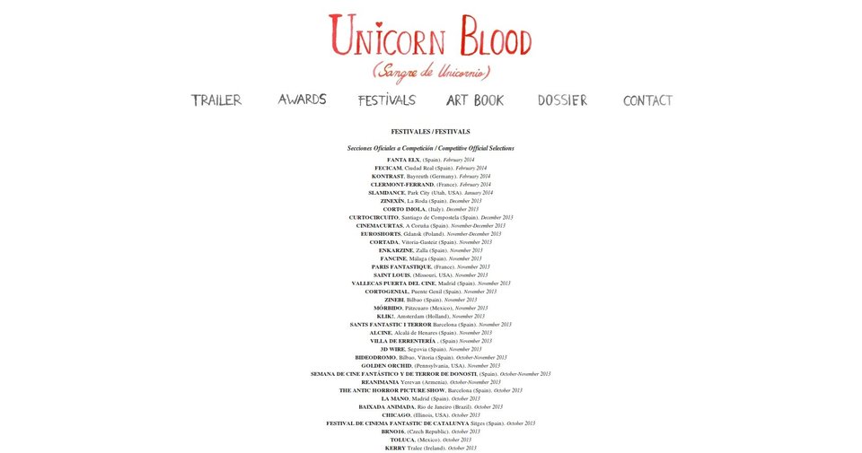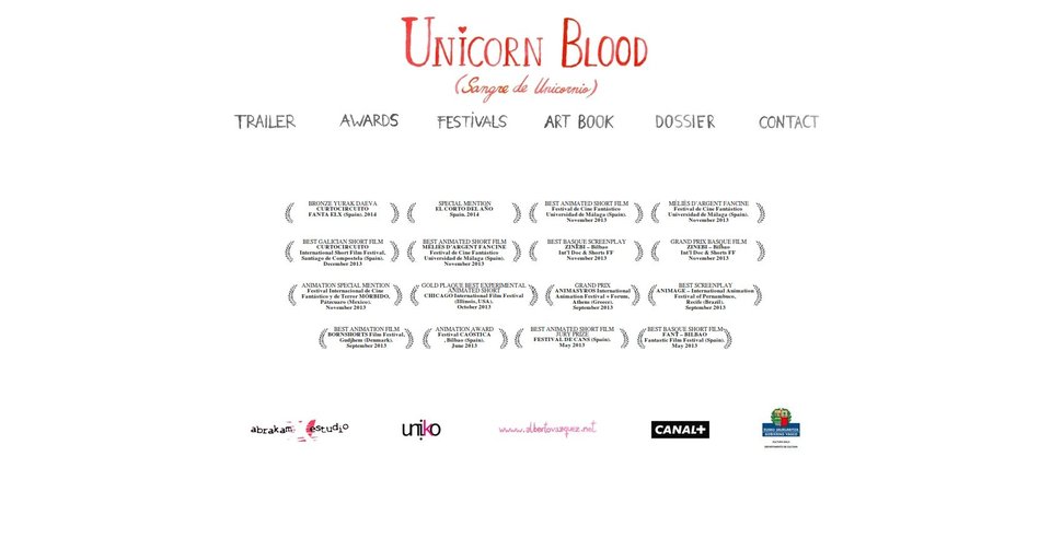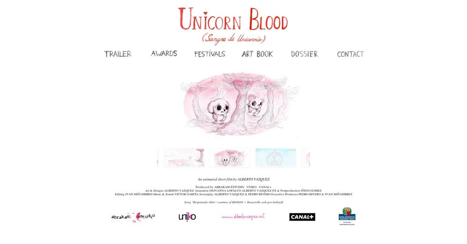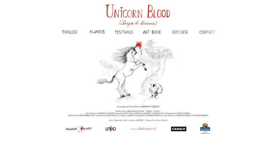 Web para el cortometraje Sangre de Unicornio del director Alberto Vazquez (ganador de un Goya por Birdboy)